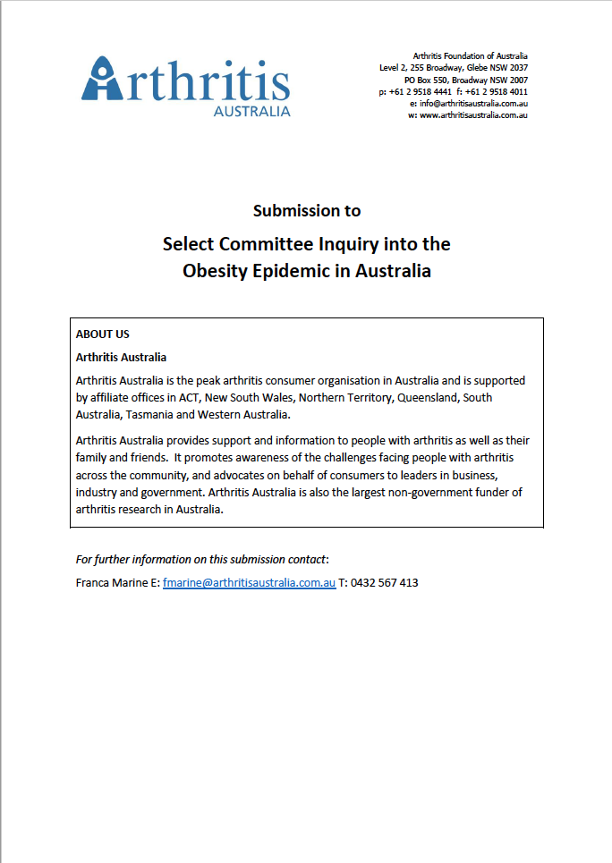 Arthritis Australia’s submission to the Standing Committee on Health Inquiry into Chronic Disease Prevention and Management in Primary Health Care identified a number of primary care based strategies which offer the greatest scope for improving care for people with arthritis. These include: